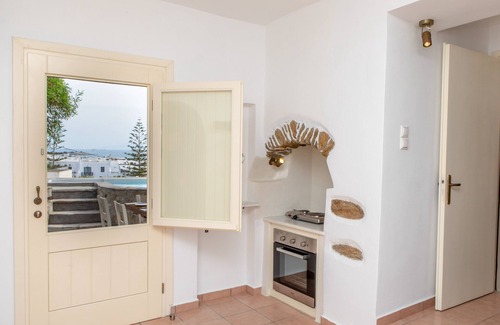 There is a fully equipped kitchen with a large oven, a stove, a Nespresso machine,a toaster and all necessary kitchen tools, plus a washing machine for clothes. A nice comfortable and cosy living room area to relax and enjoy the view at the pool ,or maybe to watch Wifi-32 inch TV (Netflix). There are also two bedrooms , both separated by doors.