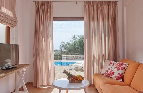 Just a few minutes’ walk from the beach, this 150 m² 4-bedroom villa offers modern comfort and a serene setting above the Ionian Sea. With a private pool, jetted tub, and sea-facing terrace, it's ideal for families or small groups seeking stylish privacy.