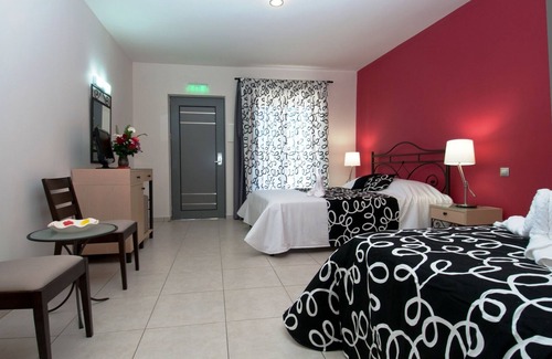 At a beautiful location, at the beginning of the village, the hotel has 22 rooms for families, couples, as well as people with special needs. The rooms are equipped with wonderful double and single beds, whose mattresses embrace you, giving you the sense of relaxation and providing comfortable sleep. Beautiful bathrooms, hairdryer, bathroom products, LCD televisions with satellite channels, safe, fridge, Wi fi, air-condition and of course private terraces with view at the pool and the garden.