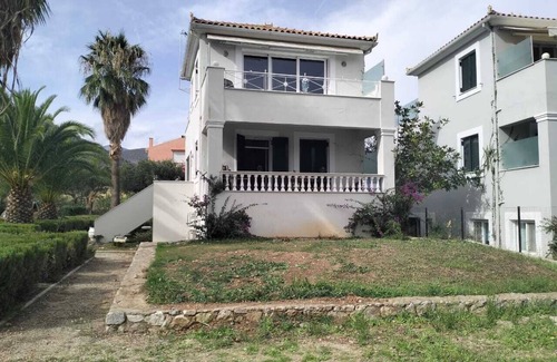 There is also a private place in the sea below for your boat! The house provides all the comforts. It is located on a plot with its own garden of 500 square meters. Amazing view of the green garden with the palm trees, the Corinthian Sea and the imposing mountains of Parnassos as a background. It is the first of the three maisonette buildings inside a large complex of 3500 square meters.