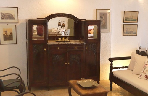 Lino House is the biggest of the Afoura Houses complex as it accommodates up to 8 guests and can become even bigger as it connects with the Pori House if necessary. The house besides the 2 bedrooms and bathrooms features a fully equipped kitchen plus indoor and outdoor dining areas. Info: Lino took its name from its function when Afoura was a winery. You will see the place where the grapes used to be processed before being stored.