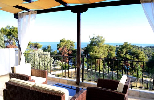A luxury villa with amazing view to the sea and the sky.Between the olive trees and the forest in a very quiet and peacefull place where the visitors can enjoy their holidays.You will explore a small paradise,having fun and spending a nice time in our property.Looking forward to seeing you.
