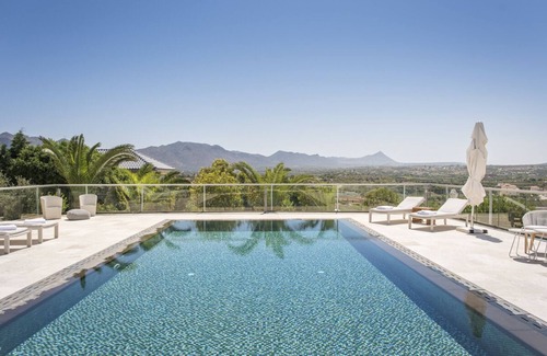The architecture of the villa is modern and elegant, perfectly complimenting the surrounding environment. The interior of the villa manages to balance a contemporary style, whilst embracing homely comforts that will ensure a cosy stay. All the ensuite bedrooms are spacious and bright, conveying a welcoming atmosphere whilst showcasing the surrounding countryside. The comfortable living areas and well equipped kitchen make guests feel as comfortable as at home.
