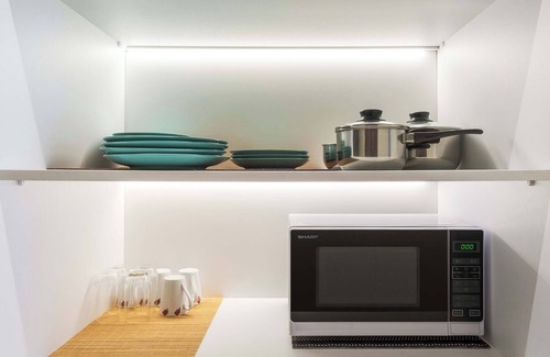 This fully equipped first-floor studio, featuring a cozy bunk bed, is designed to comfortably accommodate up to two guests. It provides all the essentials for a relaxing stay, including a well-equipped kitchenette with a microwave, essential cookware, a kettle, and a dining table for your convenience. Whether you're preparing a quick meal or enjoying a cup of coffee, everything you need is at your fingertips.