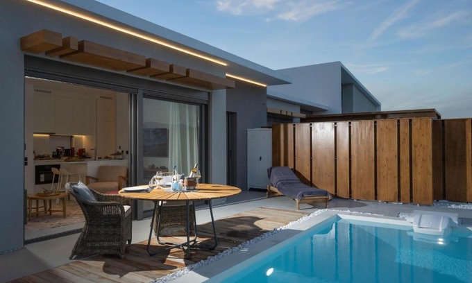 Offering a garden, AZIZA luxury suite offers accommodations in Tolo. This property offers access to a terrace, free private parking, and free Wifi. The sea views are a highlight at the villa's pool. The air-conditioned villa consists of 1 bedroom, a living room, a fully equipped kitchen with an oven and a coffee machine, and 1 bathroom with a shower and bathrobes. A private entrance leads guests into the villa, where they can enjoy some wine or champagne and fruit. This villa is non-smoking and soundproof. Tolo Beach is a 18-minute walk from the villa, while Ancient Asini Beach is 1.2 miles from the property. Kalamata International Airport is 93 miles away, and the property offers a paid airport shuttle service.