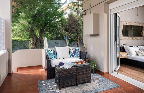 In front of the building and just next to the beach you can find the big patio with a wooden deck, sun loungers, a hammock and two sunken Jacuzzis, which makes the perfect spot for relaxing in the sunshine.