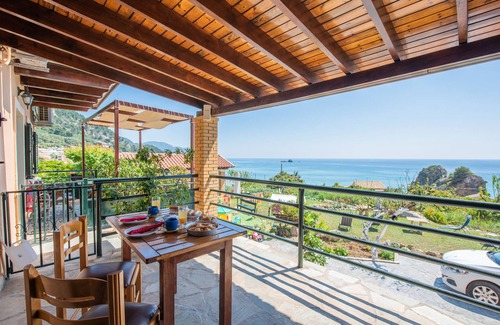 Here are instructions on how to get to our apartments. Our studio is a 28-30 sqm apartment. The bedroom has a double bed, an attic with two single beds in different spaces, a single bed, a dressing table with mirror and a large wardrobe and has two air conditioning units to keep you cool in the hot summer days. The apartment also has a fully equipped kitchen with all the necessary utensils and equipment such as a kitchen with an oven, kettle and coffee machine so that you can enjoy your coffee and tea etc. A bathroom with shower is next to the kitchen, satellite TV It is available for those looking for entertainment, free Wi-Fi internet and a large (27 sqm), shaded, private veranda with a table and chairs is the place where you will likely be spending a lot of time enjoying the garden and ocean views.