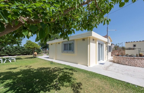 Comfortable, warm and quiet country house of 70 sq.m. in the beach of Analipsi, Messinia, Greece, in a fenced area within 6 acres of land next to the sea and in Nielson and Buca Beach hotels. An idyllic setting for rest. It can accommodate 2-7 people. It is suitable for families or large groups and is an ideal place for children. The sea is only a 2-minute walk away, it is lit up and the beach is sandy. There are organised and individual beaches.