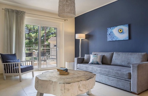 Deluxe Kefalonia Apartment | Apartment Myrtillo | 1 Bedroom | Pool | Sea View is located in Karavomylos. Deluxe Kefalonia Apartment | Apartment Myrtillo | 1 Bedroom | Pool | Sea View provides accommodation, featuring Fireplace/Heating, Pool, Bedding/Linens, among other amenities. This Villa features Fireplace/Heating, Pool, Bedding/Linens, to make your stay a comfortable one.