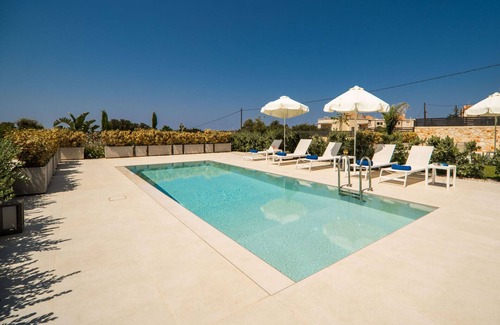 Modern share of a villa with a private pool in the small town of Kounoupidiana, Crete.