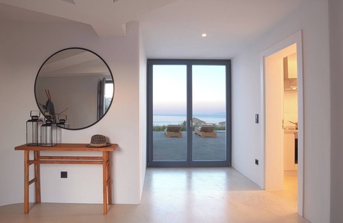 The villa is best reached by car, with on-site parking available. Mykonos Town (Chora) is approximately a 20-minute drive away, offering world-class dining, vibrant nightlife, and boutique shopping. Local taxi services and rental car options are readily available for flexible transport across the island.