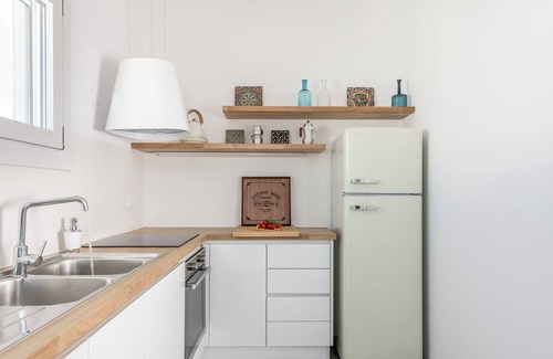 Elyos Boutique Apartment (Elio) is 1 minute walk from the sea of Pelekoudas in Pollonia. Enjoy the most beautiful sunset in the island from our huge balcony. New construction (100 square meters) with 2 bedrooms and 2 bathrooms and full equipped. Ideal for family or groups of friends.