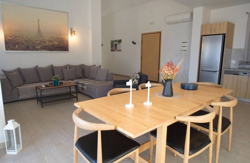 Superbe expérience pour un premier séjour en Crète. La villa est située sur une petite colline où l'on peut observer la mer depuis la piscine à débordement. Proche du village de Gerani, très mignon, très typique, avec des crétois généreux et avenants. Nous somme partis entre amis et ne regrettons pour rien au monde d'avoir choisi cette magnifique villa. Nous remercions aussi et Markos qui nous ont permis de passer de merveilleuses vacances de part leurs réactivités et leurs conseils.