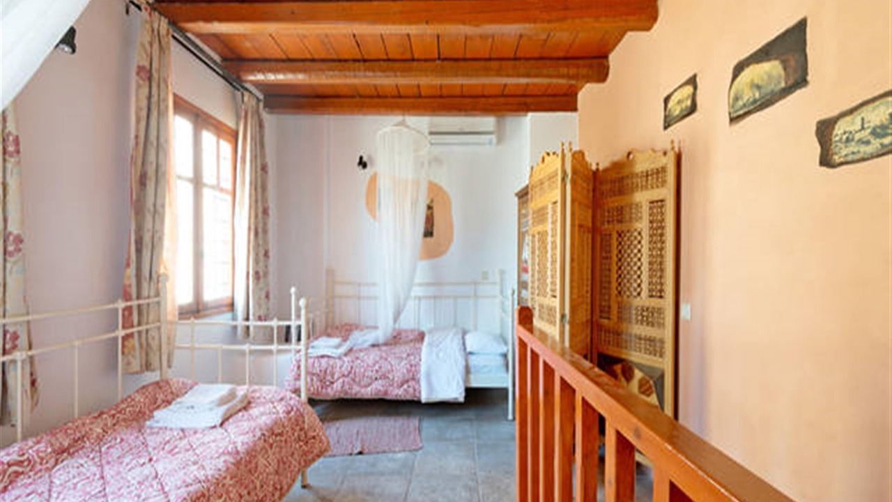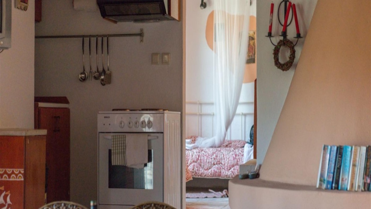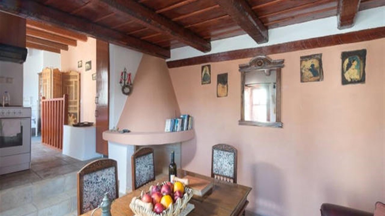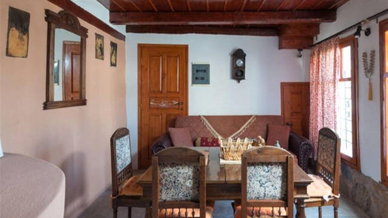 On entering the house to the right is a complete bathroom, and on the left is a double room with matrimonial bed. Up few steps and we arrive at the first floor, on the right are two single beds and further along is a complete kitchen with all utensils, dining table and fire place.