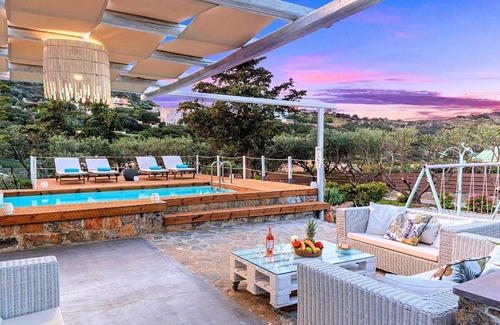 Situated in Agios Nikolaos, within 2.4 km of Agios Panteleimonas Beach and 8 km of Lake Voulismeni, Cretan Lodge Heated Pool offers accommodation with free WiFi, air conditioning, an outdoor swimming pool and a garden.The property has sea and mountain views, and is 7 km from Agios Nikolaos Port.The villa features 2 bedrooms, 1 bathroom, a flat-screen TV, a dining area, a fully equipped kitchen, and a patio with garden views.Staff speak Russian, Greek, English and Polish at the reception.The villa offers a barbecue.Both a bicycle rental service and a car rental service are available at Cretan Lodge Heated Pool, while hiking can be enjoyed nearby.Panagia Kera Church (in Kritsa) is 8 km from the accommodation, while Archaeological Museum of Agios Nikolaos is 8 km from the property.The nearest airport is Heraklion International, 66 km from Cretan Lodge Heated Pool, and the property offers a paid airport shuttle service.The outdoor pool is heated and can reach 6 to 8 degrees more that the 24 h average air temperature with maximum value of 29°CShort descriptionOther : Non-smoking houseShort description 1Number of kitchens : 1SurroundingNearby sports facilities : Bike tours, Climbing, Diving, Mountain climbing, Tennis, Water skiingRental Facilities : car rentalSurrounding 1Location description : Vathi is located 10km south of Agios Nikolaos, in the area of Kritsa, just before the beaches of Istron. It is generally unknown beach, just because it ... did not exist before 2010, as it is artificial! It is also not seen from the old road that links Agios Nikolaos with Eastern Crete.The beach is artificial and is formed in a narrow bay, which is very well protected from the winds. Only easterly winds could affect the area, but they are very rare in Crete. The beach has fine whitish sand, making the colors of the sea stunning. It is very well organized, because it is operated by the luxurious local hotel Daios Cove.To get to the beach, if you don't stay in the hotel, you should walk down a concrete pathway with staircases. In order to find the path, turn left just before the hotel entrance and follow the road to the houses outside the resort, till you find a narrow street leading to the staircases. Vathi is ideal for families as there is no wave. You could also explore the rocky shores of the Gulf with your snorkeler’s mask.Garden and outdoorGarden facilities : Garden furniture provided, Grill, Summer houseOn-site leisure facilities : Outdoor swimming pool exclusive use, Swimming pool