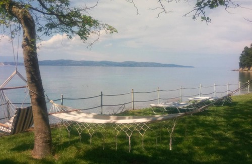 The house is located directly in front of the sea. The organic garden with 40 fruit trees of all kinds.