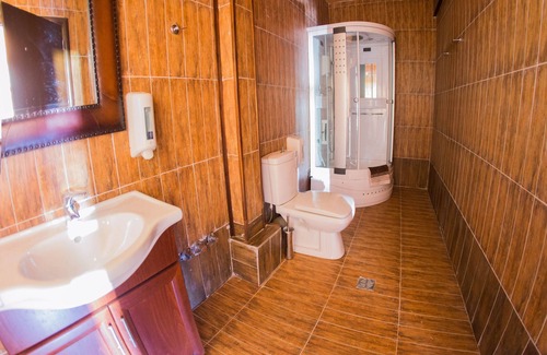 Maisonette on two levels, with 4 bedrooms, 4 bathrooms including 2 bathtubs and 2 showers, a living room, which can accommodate up to 8 people, with 2 fireplaces and 4 queen size beds. It is a perfect maisonette with five separate rooms for families or friends. It offers a very nice view over the lake and the forests of Pindos. Both fireplaces include a heater wich burn wood in order to heat adequately the entire house