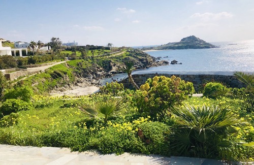 Mykonos Elite Suites Le Grand Bleu are ideally located on the Platis Gialos golden beachfront between the notorious Paraga beach (4 min by walk) and the famous Psarou beach (7 min by walk). The panoramic view from the private garden veranda is really breathtaking. The most famous beach clubs of the island like Scorpios and Santanna (Paraga beach) and Nammos (Psarou beach) confirm that you are in the right place!