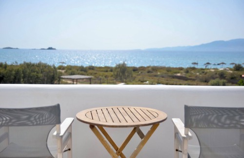 Naxos Beach House is located on Plaka Beach, which is one of the most beautiful beaches in Naxos. There is no road between the house and the beach, that is what makes the place so special.
