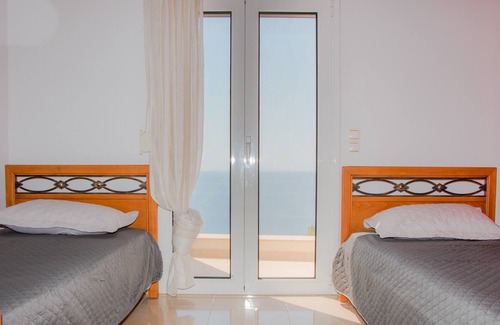 It has 3 bedrooms. Room Νο1 has a king-size bed with a playpen for your baby or child. Room Νο2 has a double bed and its own room / wardrobe with the possibility of placing a playpen. Room Νο3 has two single beds with the possibility of a third bed (ranch). There is the possibility to add one more bed (ranch) upon your request to the upper floor,