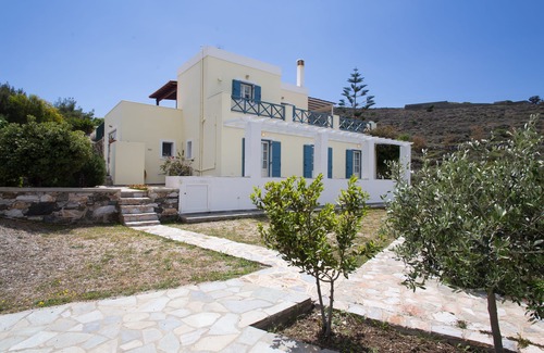 • Located on the SW side of the island, on a Cycladic mountain full of thyme, sage in a historical village.