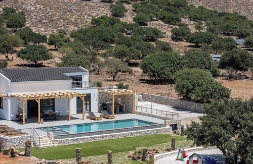 Born from the sea and the wild, Pelagria Villa captures the untamed beauty of the Cretan coast. A sanctuary shaped by salt, stone, and wind — where nature leads, and you simply follow. Wake to soft sea breezes and the rhythmic murmur of waves in this refined retreat, gracefully positioned just moments from a pristine sandy beach. Designed for up to eight guests, the villa features three beautifully appointed en-suite bedrooms, each offering a tranquil sense of comfort and privacy. The open-plan living space flows seamlessly into a fully equipped kitchen and elegant dining area, thoughtfully crafted for moments of connection and ease. Outdoors, a private (non-heated) pool with calming hydromassage features invites deep relaxation, while a dedicated children’s pool, ping pong table, and a playground create joyful moments for younger guests — all set against land & sea views. Gather beneath the covered terrace for unforgettable alfresco meals, where a gas BBQ and the island breeze set the tone for long, languid evenings. A quiet expression of barefoot lifestyle and elemental beauty, offering a soulful escape that lingers long after you leave.