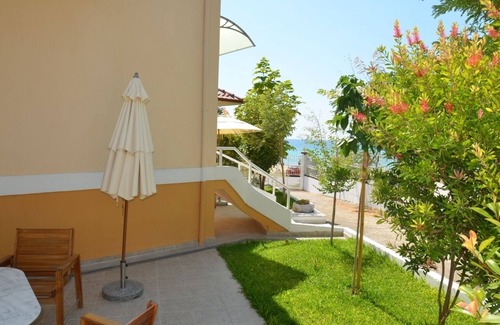 Elegant seafront holiday home No 3 is part of an 8-unit complex surrounded by a beautiful garden, adjacent to a grove.
