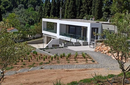 Meraki Beach House 1 is a single storey (3 bedroom, 2 bathroom-1 ensuite), seafront luxury apartment, for max 6 people, with direct 2min access to a private beach. The property is located in a serene surrounding in front of the sea, 67min drive away from Athens Airport. The apartment enjoys a panoramic seaview, is brand new (constr. 2021) & is professionally designed & decorated.