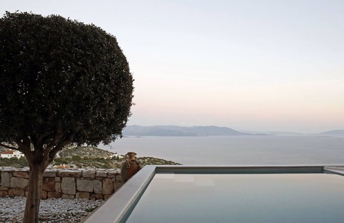 A minimal house,perfectly located atop the hill of Dikastika, offering a breath-taking view of the Aegean sea, islands and the north part of Evia.