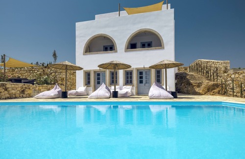 Featuring a private 50 square meters pool with sun terrace, the estate lies just 150 metres from Epsimia Beach and is located on the amphitheatrical center of the island providing advantageous access to all its major attractions, the monumental sight of the Cave of the Apocalypse, the popular intellectual elite and celebrity settlement of Chora, the scenic town of Skala with its port, and the picturesque and quiet fishing village of Grikos, all within a 4 kilometers radius.