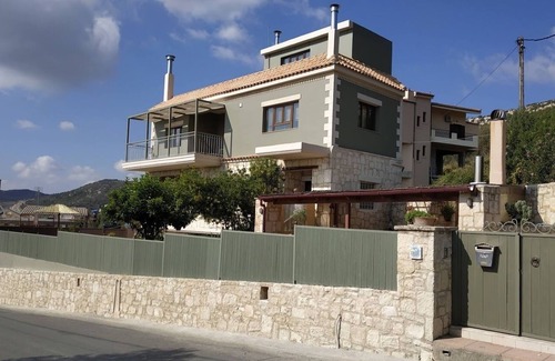 Quiet, full of fresh air, the two floor sunny house is surrounded by vineyards and olive fields in a traditional small village in the middle of Crete. Panoramic view from the living room and from the kitchen which are on the upper floor. Garden & pool view from the 3 bedrooms. Private pool also for the night. BBQ & wood oven outdoors. Guests can find all facilities in the kitchen and all the goods for a healthy Cretan breakfast at their arrival.