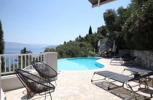 This well appointed villa is modern and stylish with a Scandinavianin touch and situated in one of the most attractive locations in North East Corfu. A short walk down the rough footpath, through the olive grove, takes you to Agni beach with the famous tavernas and turquoise water, perfect for swimming. Relax on one of the comfortable terraces and enjoy the peace and quiet whilst watching the numerous yachts passing by or anchoring up at Agni and Yaliskari Bay. The outdoor area includes a simple outdoor kitchen with built in barbecue, dining area with awning for additional shade, upper terrace by the pool and an additional lower terrace with direct access to the downstairs bedrooms. A special feature is the large modern terrace, built into the hillside behind the pool, offering fantastic sea views and comfortable lounge style seating for 12 people. WIFI and air-conditioning in all bedrooms are included.
