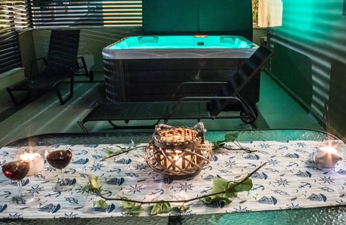 An outdoor spa (for 3-5 people) to relax looking in the view and the beautiful sunset.