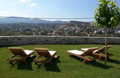 The Outdoor Area includes: terrace, dining table with armchairs, sun loungers, umbrella, outdoor shower, grassland and gardens, carport, stone wall with an electronic gate for your privacy. Overlooking the terrace are abundant and Majestic views of Asterousia Mountains, Pitsidia Village and many other villages.