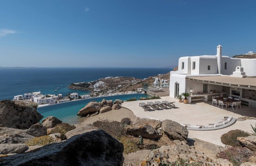 Villa La Roccia - MG Villas Mykonos has 8 Bedrooms , 9 Bathrooms, and max occupancy of 16 people. The minimum rental for this property is 1 nights, but this can change depending on the season you plan on staying. Previous guests have given good rated it, and VRBO labeled it a top-rated Villa because of the excellent services rendered by the owner or manager of this Villa, and has consistently provided great experiences for their guests. Most families or guests that use it recommend it to their friends and some of them are repeat guests. Villa has a friendly neighborhood, and the Agios Stefanos has interesting places to visit. If you want to learn more about the Villa in Agios Stefanos, such as places to visit and things to do nearby, you can check below to learn more.