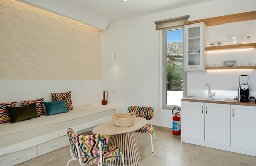 Each space is carefully crafted to enhance your stay at Orelia Luxury Villas. Air conditioning ensures a cool atmosphere in all indoor areas. Free high-speed Wi-Fi allows you to work or communicate with your loved ones. Televisions in the living room and bedroom offer a selection of international and Greek satellite channels. The fully equipped kitchen features handmade porcelain tableware, cookware, electrical appliances, and a professional NESSPRESO coffee maker.