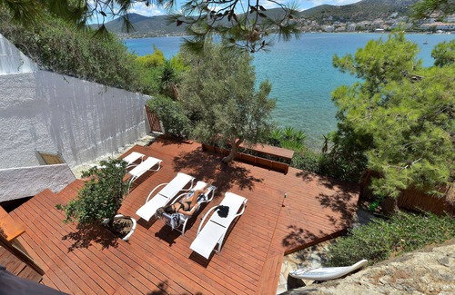 A spacious elevated wooden deck terrace just 10 steps above the sea provides sea views privacy and relaxation.