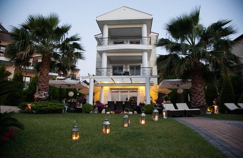 Discover a recovery paradise and bath experience of a special kind, in a personally, family-owned atmosphere, where you will feel like a king/queen. Surrounded by pinewoods on a sandy beach, our newly built exclusive vacation home with complete and comfortable well-furnished apartment is placed in a quiet area with a 2500 m² maintained garden around it, private parking, and fenced by evergreen hedges. Large grass surfaces exist alongside with citrus trees, palms and cypresses. An also large pergola with an external barbecue invites you to enjoy eating at the garden. The generous terrace provide you a green-blue panorama with unforgettable sunrises and romantic sunsets.