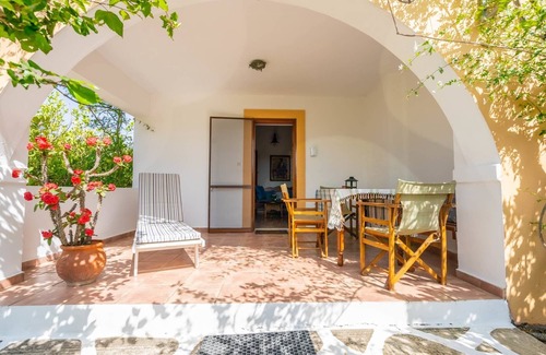 The perfect base to explore south west Crete. A great choice of swimming spots and trekking routes lie within a short distance. You are looking at a fully furnished family house situated in a secluded garden, just 200 meters from a sandy beach and 600 meters from Frangokastello. Zefiros is located within a complex of four independent houses and is surrounded by olive trees, flowers and various fruit trees. The house is serviced daily. The price includes daily housekeeping.